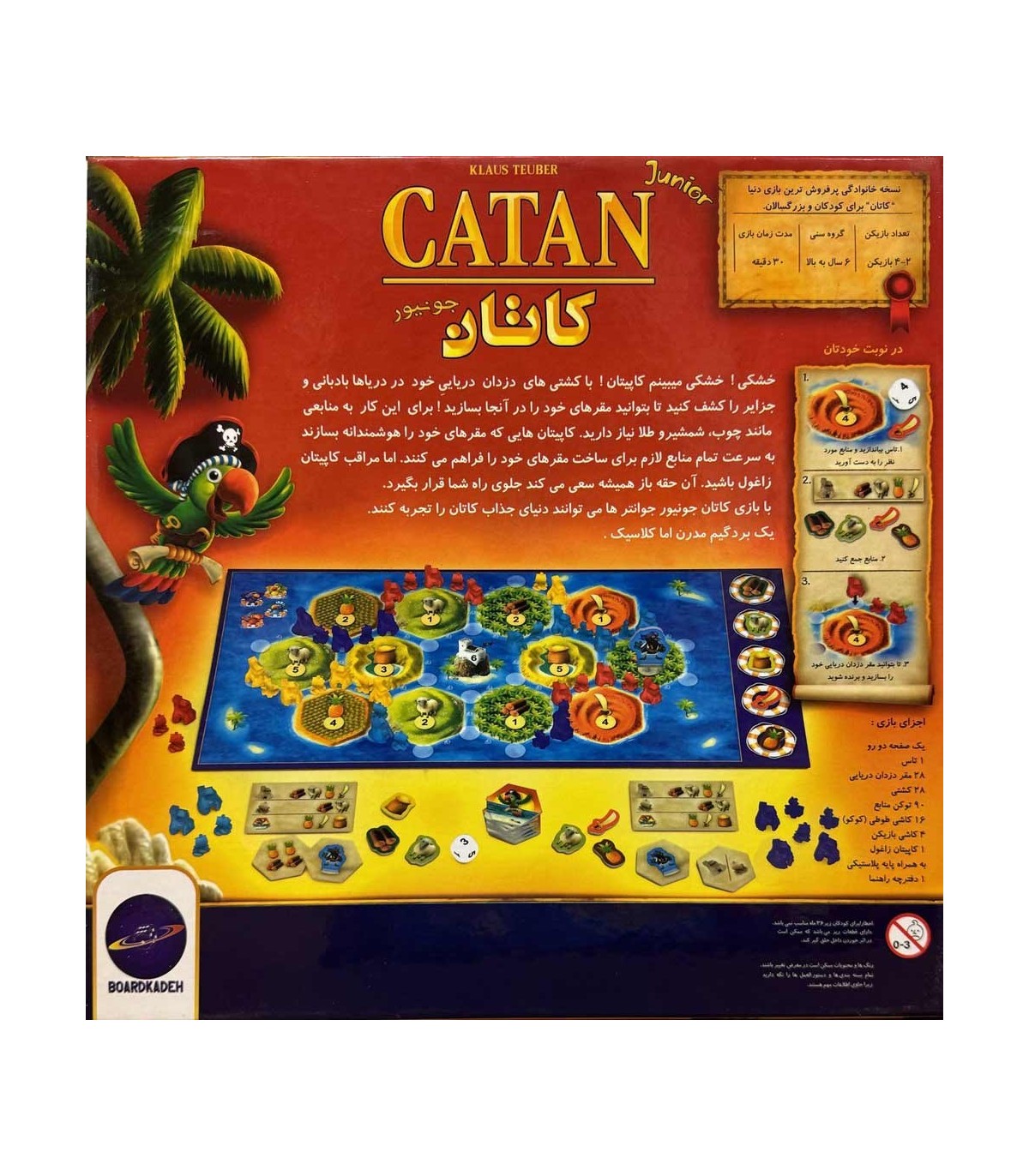 سپس هر بازیکن 7 مقر دزدان دریایی و 7 کشتی که با رنگ طوطی خود مطابقت دارد را دریافت می کند.