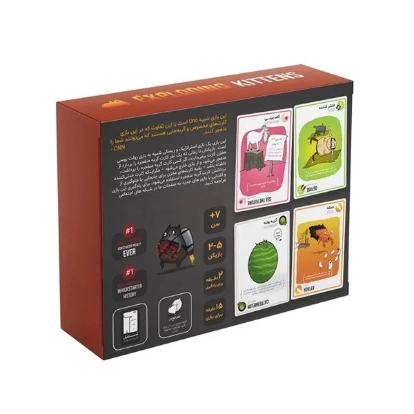 گربههای انفجاری یک بازی استراتژیک و ریسکی شبیه به بازی رولت روسی است. اگر کارتِ گربه منفجره را بردارید، میبازید. البته اگر کارتِ خنثیکننده داشته باشید، میتوانید جلوی خرابکاری گربه منفجره را بگیرید تا منفجر نشوید! بقیهی کارتهایی که در بازی هستند به شما کمک میکنند تا ریسک خود را در بازی کاهش دهید تا در پایان بازی زنده بمانید و برنده شوید و صاحب یک دستگاه شوید!